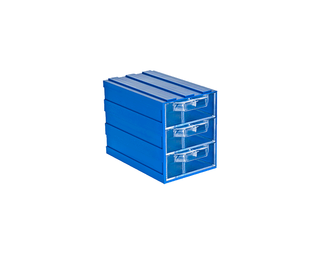 Plastik 3 şeffaf çekmeceli kutu Dış ölçüleri: 83 x 134 x 103 mmDışı mavi, çekmecesi şeffaf plastiktir.Kızakları sayesinden alt alta veya yan yana takılarak kombinasyon oluşturulabilir.132 ve 136 ile birbirine takılabilir. Plastik Çekmeceli kutular depolama ve stok kontrolünü kolaylaştırmanın yanı sıra montaj sürelerini de kısaltmaktadır.. Sağlamlık ve direnç sayesinde ihtiyaca uygun tüm sektörlerde kullanılmaktadırlar.Elektrik & ElektronikOtomotiv ve Yan SanayiiSağlık, İlaç ve KozmetikMakine SanayiiHırdavat ve NalburiyeParekende SektörüHavacılık SektörüKızakları sayesinden alt alta veya yan yana takılarak kombin oluşturulabilirler 133 Plastik Çekmeceli Kutu133 plastik çekmeceli kutu, küçük ve orta boy parçaların düzenli depolanması için tasarlanmış modüler plastik çekmeceli kutu modelidir. Plastik çekmeceli kutular serisinin en çok tercih edilen orta segment ürünlerinden biridir.Şeffaf çekmecesi sayesinde içindeki malzemeler kolayca görülebilir. Ürün