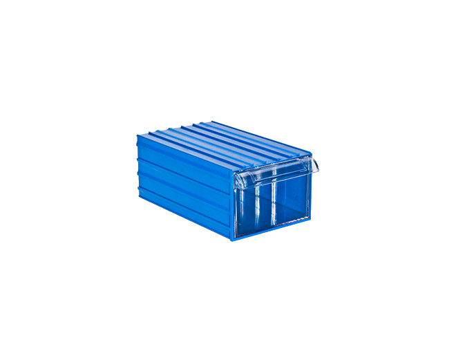 Plastik şeffaf çekmeceli kutu Dış ölçüleri: 140 x 230 x 98 mmDışı mavi, çekmecesi şeffaf plastiktir.Kızakları sayesinden alt alta veya yan yana takılarak kombinasyon oluşturulabilir. Plastik çekmeceli kutular depolama ve stok kontrolünü kolaylaştırmanın yanı sıra montaj sürelerini de kısaltmaktadır. Sağlamlık ve direnç sayesinde ihtiyaca uygun tüm sektörlerde kullanılmaktadırlar.Elektrik & ElektronikOtomotiv ve Yan SanayiiSağlık, İlaç ve KozmetikMakine SanayiiHırdavat ve NalburiyeParekende SektörüHavacılık SektörüKızakları sayesinden alt alta veya yan yana takılarak kombin oluşturulabilir. 500-A Plastik Çekmeceli Kutu500-A plastik çekmeceli kutu, küçük ve orta boy parçaların düzenli depolanması için tasarlanmış büyük hacimli modüler plastik çekmeceli kutu modelidir. Plastik çekmeceli kutular serisinin üst segment çözümlerinden biridir.Şeffaf çekmecesi sayesinde içindeki malzemeler kolayca görülebilir. Ürün