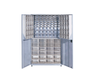 160 Plastik çekmeceli kutulu, kilitli kapaklı metal gövdeli standDış ölçüleri: 1100 x 440 x 1890 mm390 24 ad. / 410 24 ad. / 420 24 ad. / 510 8 ad. / 512 16 ad. / 513 24 ad. / MS-2 40 ad. çekmece mevcuttur.Standart : Metal kısımları Lacivert Ral 5002 elektrostatik boyalıdır.Opsiyonel: Farklı renklerde de özel olarak üretilebilir.