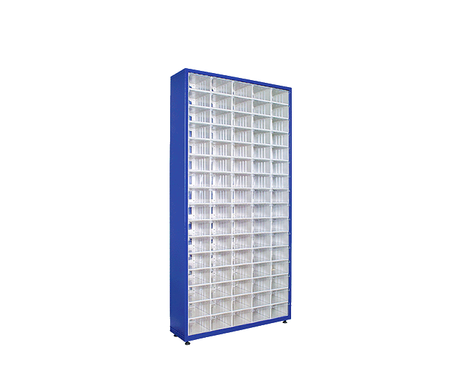 80 Plastik çekmeceli kutulu, metal gövdeli standDış ölçüleri: 920 x 230 x 1860 mm451 çekmece 80 ad. mevcuttur.Standart : Metal kısımları Lacivert Ral 5002 elektrostatik boyalıdır.Opsiyonel: Farklı renklerde de özel olarak üretilebilir.