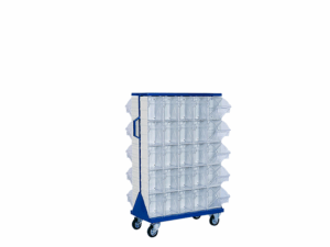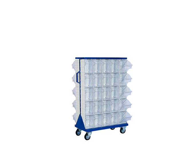 50 Plastik çekmeceli kutulu, çift yönlü ve tekerlekli metal gövdeli standDış ölçüleri: 750 x 410 x 1220 mmMS-3 50 ad. cekmece mevcuttur. 2 sabit, 2 döner tekerleklidir.Standart : Metal kısımları Lacivert Ral 5002 elektrostatik boyalıdır.Opsiyonel: Farklı renklerde de özel olarak üretilebilir.