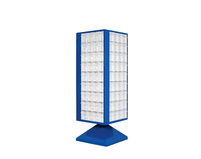 144 Plastik çekmeceli kutulu, dört yönlü dönen metal gövdeli dolapDış ölçüleri: 630 x 630 x 1820 mmMS-2 144 ad. çekmece mevcuttur.Ekseni etrafında dönerek yerden ve zamandan tasarruf sağlar.Standart : Metal kısımları Lacivert Ral 5002 elektrostatik boyalıdır.Opsiyonel: Farklı renklerde de özel olarak üretilebilir.