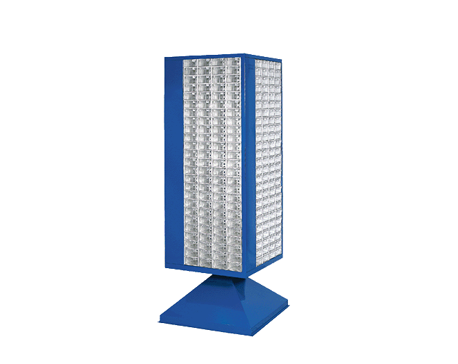 400 Plastik çekmeceli kutulu, dört yönlü dönen metal gövdeli dolapDış ölçüleri: 580 x 580 x 1690 mm202 400 ad. çekmece mevcuttur.Ekseni etrafında dönerek yerden ve zamandan tasarruf sağlar.Standart : Metal kısımları Lacivert Ral 5002 elektrostatik boyalıdır.Opsiyonel: Farklı renklerde de özel olarak üretilebilir.