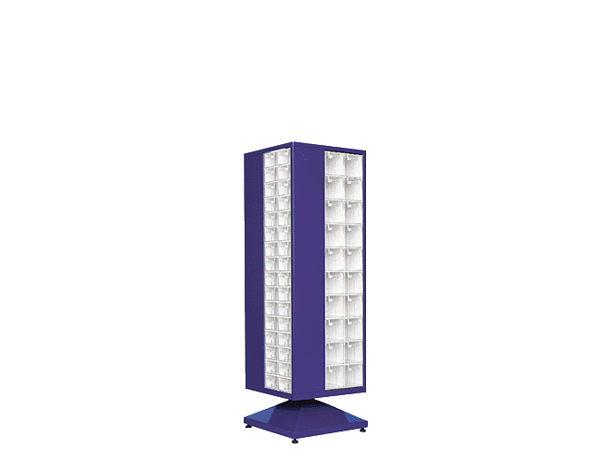 204 Plastik çekmeceli kutulu, dört yönlü dönen metal gövdeli dolapDış ölçüleri: 640 x 640 x 1750 mm390 126 ad. / 410 48 ad. / 420 30 ad. çekmece mevcuttur.Ekseni etrafında dönerek yerden ve zamandan tasarruf sağlar.Standart : Metal kısımları Lacivert Ral 5002 elektrostatik boyalıdır.Opsiyonel: Farklı renklerde de özel olarak üretilebilir.