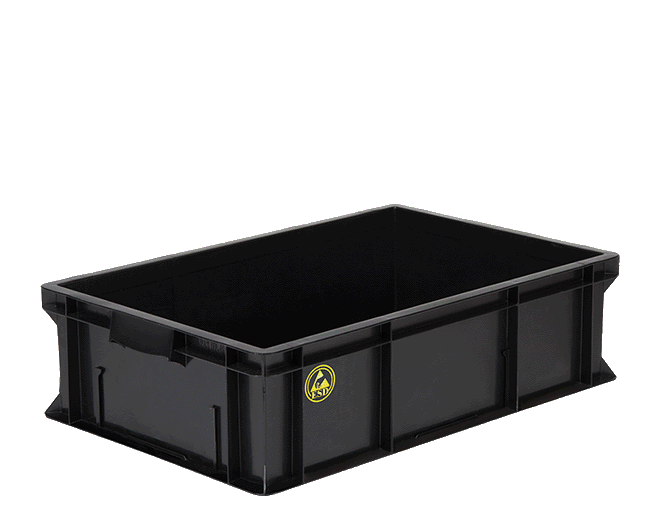 ESD Plastik yanları ve altı kapalı kasa Dış ebatları: 400x600x170 mmGüçlendirilmiş tabanlıdır. El korumalı tutma yerleri vardır.Üst üste istiflenebilir.Elektronik ürünlerin veya cisimlerin yüzeyinde elektrik mevcut ise ve bu elektriğin kaçmasına izin verilmiyorsa mevcut ESD iletken kasalar ile taşıyarak deşarj olması sağlanır.