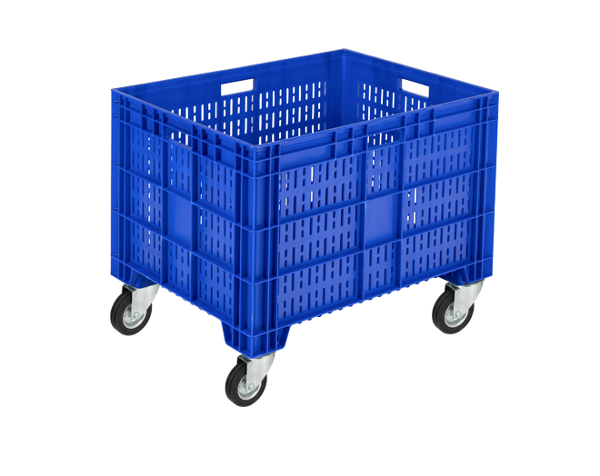 Plastik yanları delikli ve altı kapalı, tekerlekli kasa Dış ebatları: 600x800x 633 mmEl tutma yerleri açıktır. Güçlendirilmiş tabanlıdır.4 adet döner tekerleklidir.Üst üste istiflenebilir. Dayanıklı ve çok amaçlı kullanım sunan delikli tekerlekli plastik kasa, 600x800x 500 mm ebatlarıyla geniş hacimli taşıma ve sergileme ihtiyaçlarına ideal bir çözümdür. Gıda taşımacılığına uygun yapısı sayesinde kavun, karpuz gibi büyük hassas meyvelerin ve tarım ürünlerinin nakliyesinde güvenle kullanılabilir. Delikli tasarımı, hava sirkülasyonunu artırarak ürünlerin tazeliğini korur.Farklı sektörlerin lojistik ve depo ihtiyaçlarına uyum sağlayan bu plastik kasa tekerlek takımı ile donatılarak mobil kullanım avantajı sağlamaktadır.. Tarım, gıda, market, tekstil, perakende ve lojistik gibi alanlarda hijyenik, dayanıklı ve ergonomik bir çözüm arayanlar için idealdir.Öne Çıkan