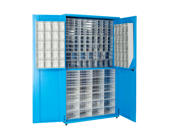 S-ÇKD-199 Plastik çekmeceli kutulu, kilitli kapaklı metal gövdeli standDış ölçüleri: 1140 x 440 x 1990 mmS-401-9 54 ad. / S-401-6 36 ad. / S-401-4 12 ad. / S-401-3 9 ad. / S-510 8 / S-512 16 ad. / S-513 24 ad. / S-MS-2 40 ad. çekmece mevcuttur.Standart : Metal kısımları Lacivert Ral 5002 elektrostatik boyalıdır.Opsiyonel: Farklı renklerde de özel olarak üretilebilir.