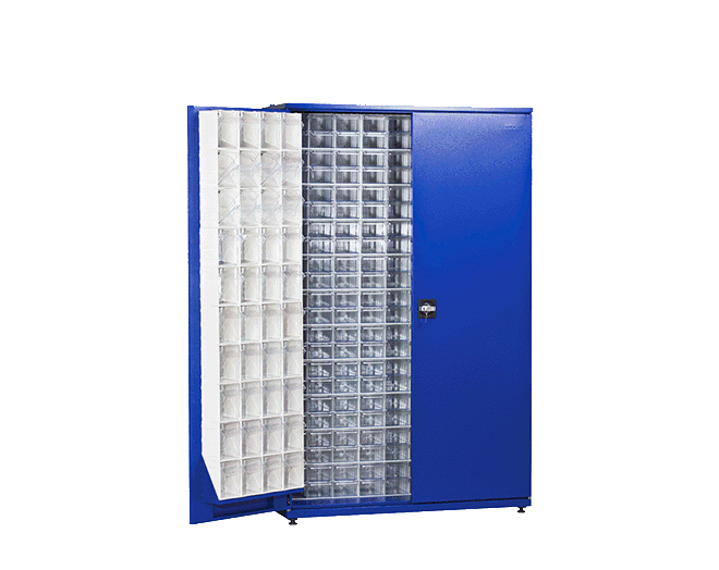 S-ÇKD-402 278 Plastik çekmeceli kutulu, kilitli kapaklı metal gövdeli standDış ölçüleri: 1140 x 440 x 1830 mmS-401-6 198 ad. / S-MS-2 80 ad. mevcuttur.Standart : Metal kısımları Lacivert Ral 5002 elektrostatik boyalıdır.Opsiyonel: Farklı renklerde de özel olarak üretilebilir.