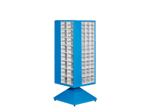 S-MT-406 176 Plastik çekmeceli kutulu, dört yönlü dönen metal gövdeli dolapDış ölçüleri: 600 x 600 x 1660 mmS-401-9 72 ad. / S-401-6 48 ad. / S-401-3 24 ad. / S-401-4 32 ad. çekmece mevcuttur.Ekseni etrafında dönerek yerden ve zamandan tasarruf sağlar.Standart : Metal kısımları Lacivert Ral 5002 elektrostatik boyalıdır.Opsiyonel: Farklı renklerde de özel olarak üretilebilir.