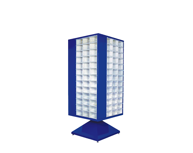 S-MT-451 154 Plastik çekmeceli kutulu, dört yönlü dönen metal gövdeli dolapDış ölçüleri: 780 x 780 x 1840 mmS-415 104 ad. çekmece mevcuttur.Ekseni etrafında dönerek yerden ve zamandan tasarruf sağlar.Standart : Metal kısımları Lacivert Ral 5002 elektrostatik boyalıdır.Opsiyonel: Farklı renklerde de özel olarak üretilebilir.