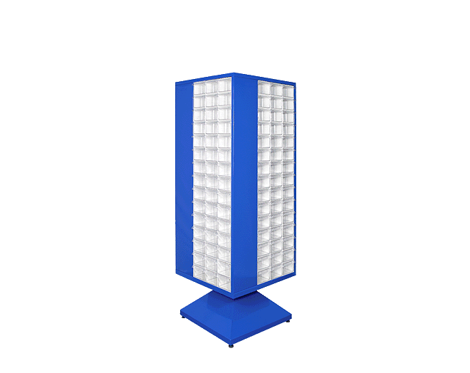 S-MT-500 180 Plastik çekmeceli kutulu, dört yönlü dönen metal gövdeli dolapDış ölçüleri: 680 x 680 x 1830 mmS-500-A 180 ad. çekmece mevcuttur.Ekseni etrafında dönerek yerden ve zamandan tasarruf sağlar.Standart : Metal kısımları Lacivert Ral 5002 elektrostatik boyalıdır.Opsiyonel: Farklı renklerde de özel olarak üretilebilir.