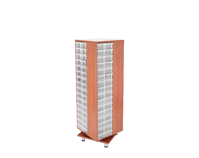 48 Plastik çekmeceli kutulu, dört yönlü dönen suntalam gövdeli dolapDış ölçüleri: 300 x 300 x 725 mmMS-1 48 ad. çekmece mevcuttur.Ekseni etrafında dönerek yerden ve zamandan tasarruf sağlar.Standart : Suntalam kısımlar Kiraz ve Akça renkli üretilmektedir.Masaüstünde kullanıma uygundur.