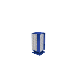 160 Çekmeceli dört yönlü dönen dolapDış ölçüleri: 320 x 320 x 1000 mm102 çekmeceli kutu 160 adet mevcuttur.Ekseni etrafında dönerek yerden ve zamandan tasarruf sağlar.Metal kısımları Lacivert RAL 5002 elektrostatik boyalıdır.
