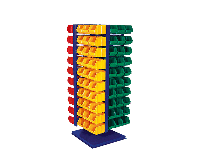 80 Avadanlık kutulu çift yönlü ve tekerlekli metal standDış ölçüleri: 1050 x 860 x 1800 mmAV-315 48 Adet / AV-415 16 / AV-520 16 Adet mevcuttur.Metal kısımları Lacivert RAL 5002 elektrostatik boyalıdır.2 sabit, 2 döner tekerleklidir.