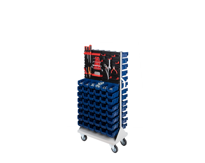 İki yönlü 126 avadanlıklı ve tekerlekli standDış ölçüleri: 635 x 540 x 1240 mm